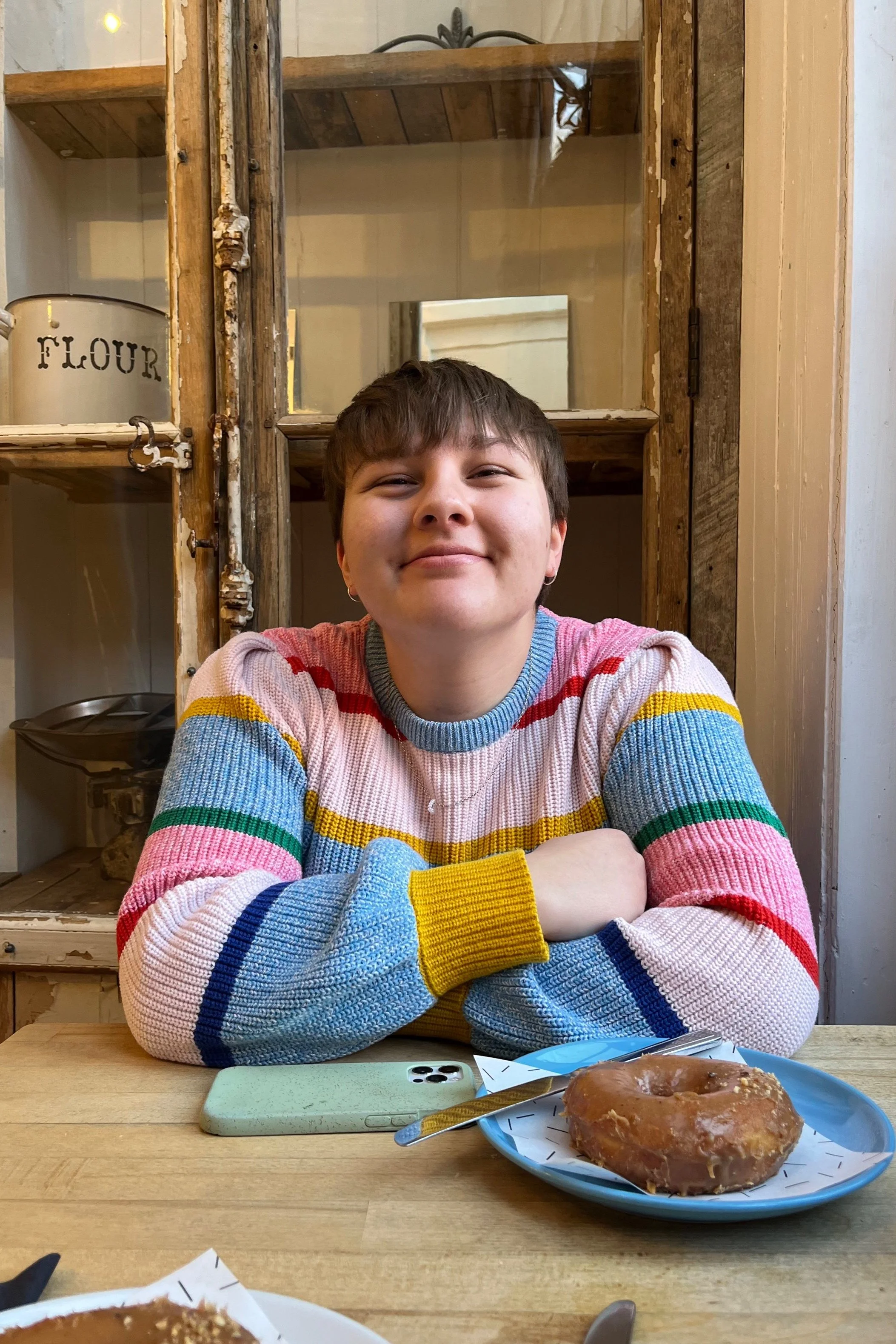 I love using bright, saturated colours and am currently focusing on creating abstract acrylic paintings. I am essentially fuelled by coffee which probably explains my attraction to such bright colours. I also have an interest in curation and am currently developing my experience in this area. When I’m not at uni I love to crochet, cook and look after my houseplants.